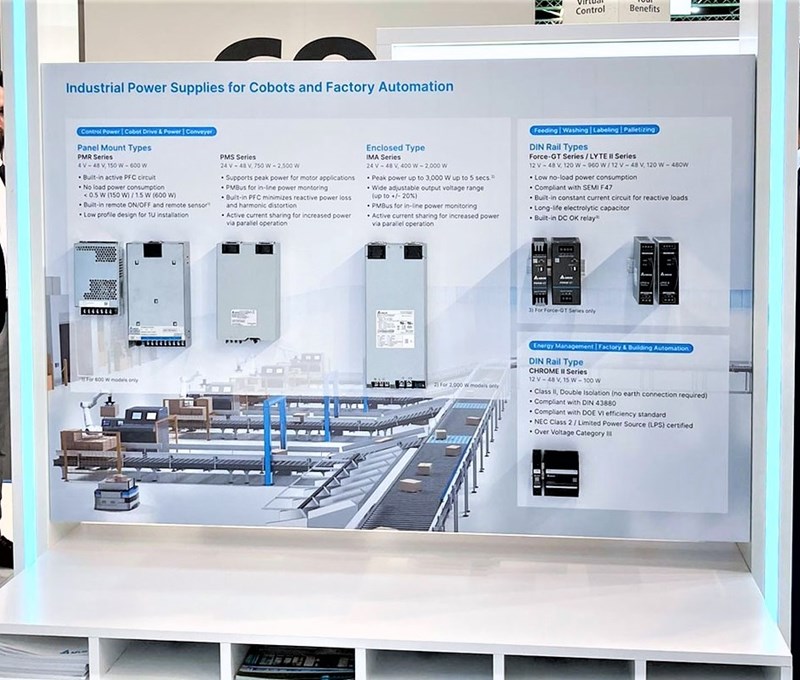To power up advanced industrial equipment in smart factories,Delta presented a range of panel mount and DIN-Rail power supplies.